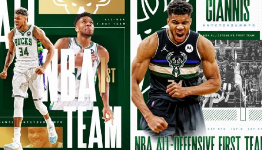 字母哥社交媒体自强不息,他是本赛季唯一入选双冠王的人